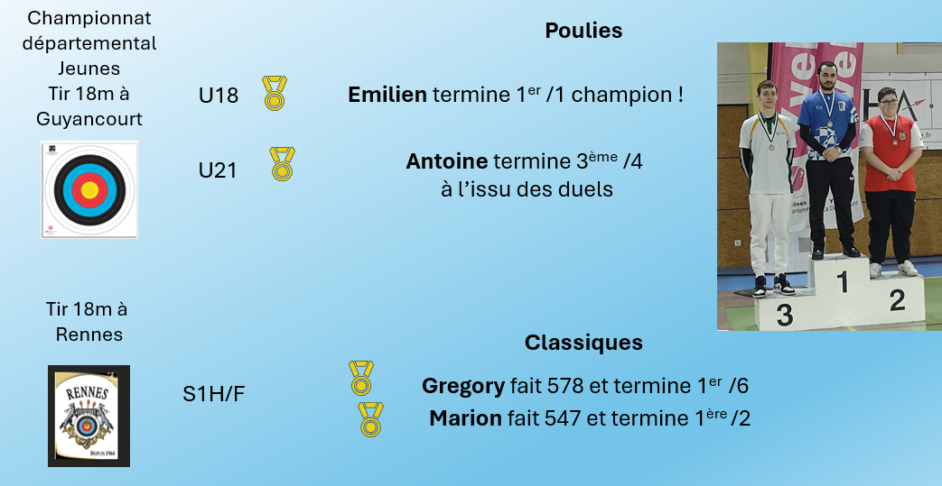 Vous trouverez tous les résultats de Guyancourt ici : https://www.ianseo.net/Details.php?toId=24879